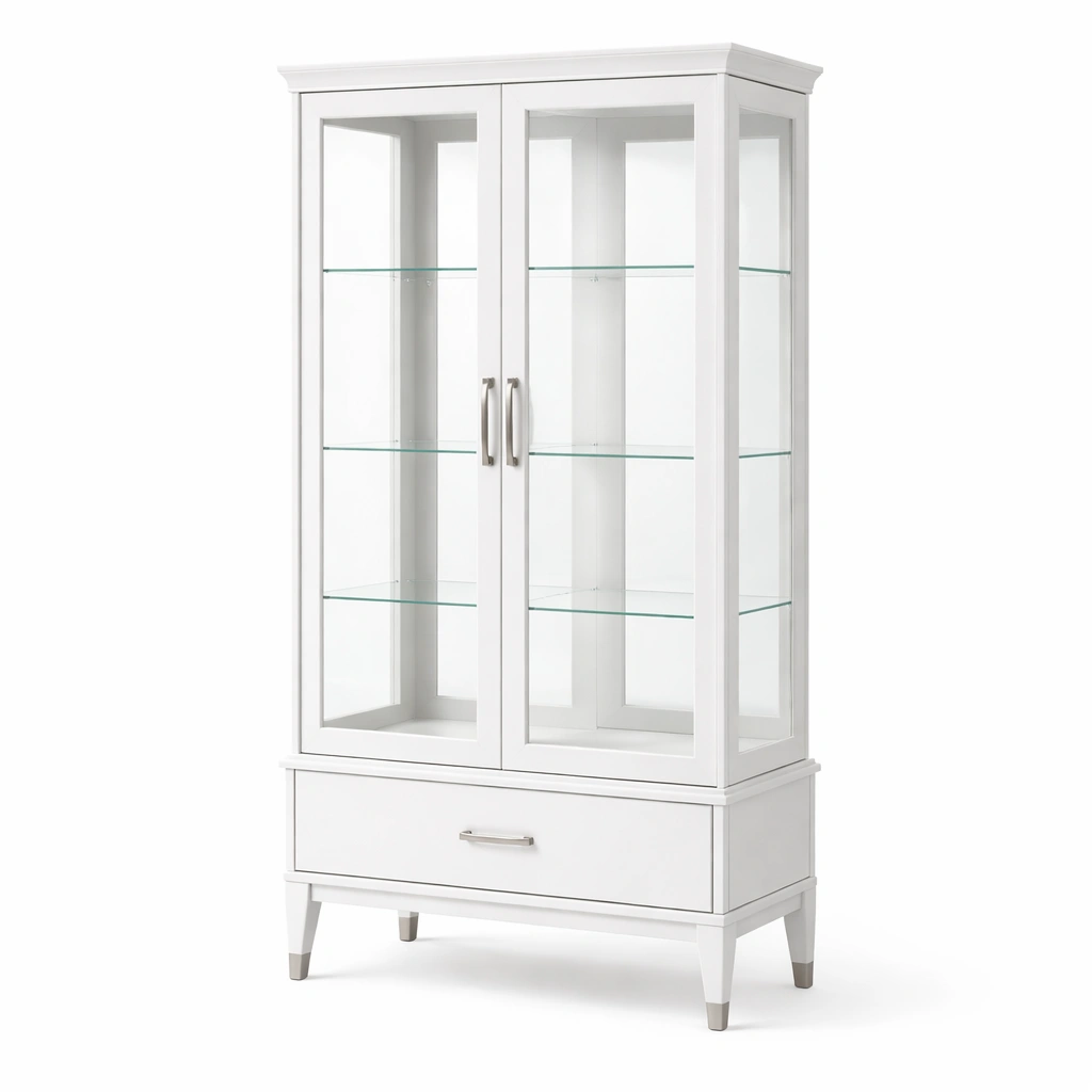 Vitrine Holz Weiß Metallgriffe